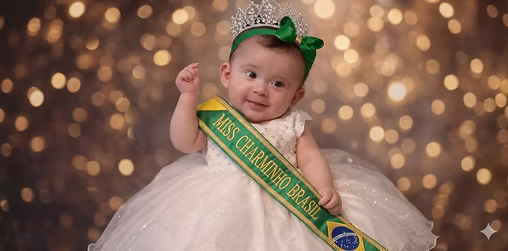Com apenas quatro meses de vida, a pequena Angela Sophia Araújo Ximenes, de Dourados (MS), já conquistou um feito raro: tornou-se a miss mais jovem do Brasil. A bebê foi eleita Miss Charminho...